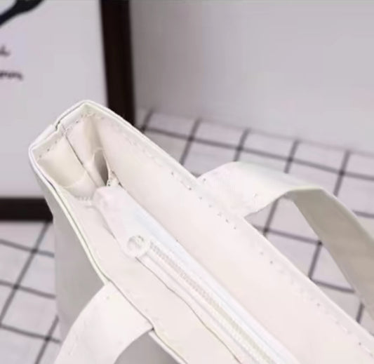 Canvas White Dog Design Tote Bag with Zipper (Copy)